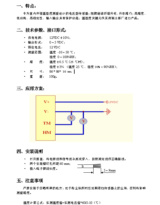 TH-100 BTR01066 電壓型溫濕度傳感器