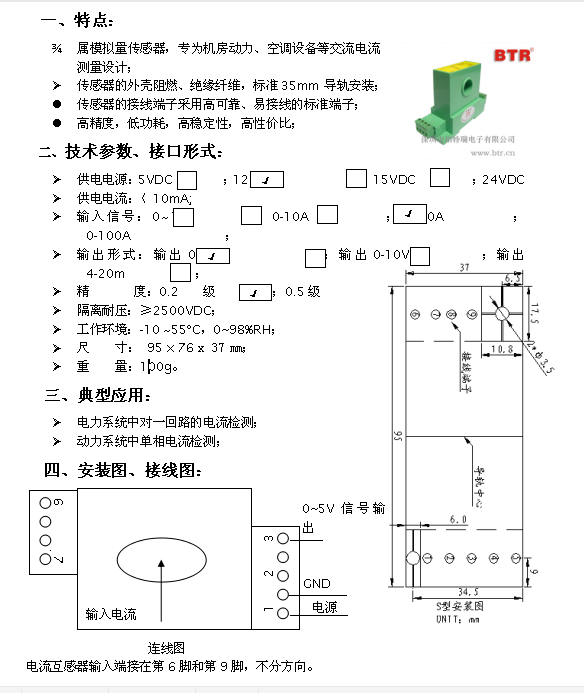 - 備注:應(yīng)用于機(jī)房動(dòng)力、空調(diào)設(shè)備等交流電流測量