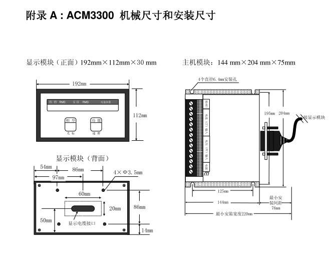 3、 采用測量主體和顯示模塊分開的方式,便于安裝;